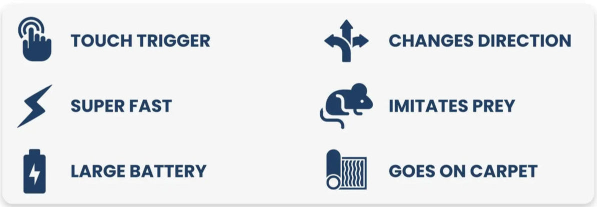 Cats are natural hunters, but most toys just let them down. They need you to keep them moving or, even worse, are too predictable. The result? Another unused toy collecting dust. The Speedy Tail 2.0 solves all these issues—and more.