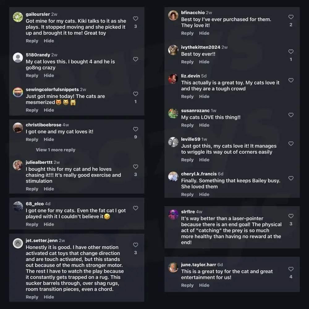 Most cat toys are either too slow, too noisy, or just plain boring. They get stuck under furniture and wear out fast. The Speedy Tail 2.0 provides endless entertainment, works smoothly on any surface, and is incredibly durable saving you time and money.